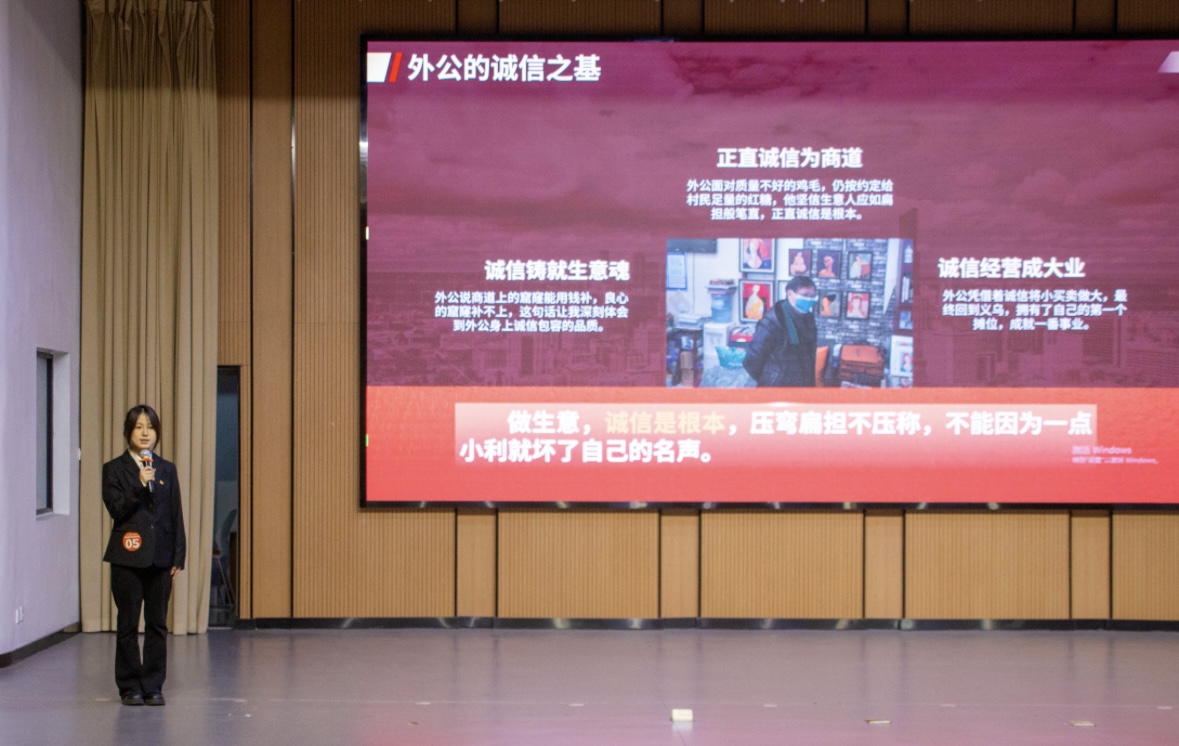 学生组比赛中,由毛霞滢、韦天跃老师指导的郑天真同学凭借作品《婺韵悠扬,做文化传承的接力者》获一等奖。该微课聚焦郑店村婺剧振兴案例,实证传统文化赋能共同富裕的浙江路径。还通过文创产品让婺剧出圈,展现浙江在战略推动下各领域发展,呼吁青年以文化为根、创新为翼,续写发展篇章。孙誉甜同学作品《一根扁担》与戴雨晴同学作品《小商品何以闯出大市场》荣获三等奖。前者以义乌商贸文化中的“扁担精神”为载体,生动诠释艰苦创业的奋斗基因。义乌人从摇着拨浪鼓起步,肩挑货担投身市场浪潮,凭借敢为人先的勇气、敏锐的市场洞察力和灵活的创新思维,借助政策扶持与产业集群优势,铸就商业传奇,凝聚成激励人心的义乌精神;后者从“小商品”视角切入,解码“世界超市”义乌的改革密码。改革开放带来历史机遇,政策支持保驾护航,义乌人以创新思维突破传统,精准把握大众需求,依托产业集群协同发展,降低成本、提升效率,让小商品在时代浪潮中成就大市场,彰显青年视角下的时代洞察力。