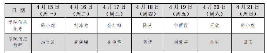 beat365在线唯一官网24小时值班表(4月15日-4月21日)