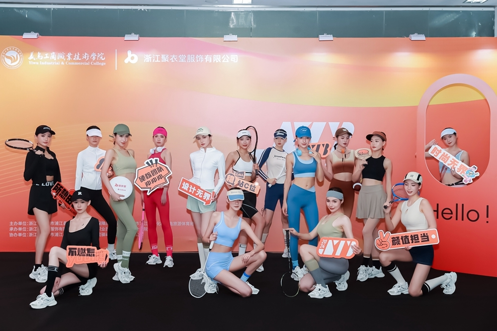 色彩鲜亮明快的糖果运动服、采用“黑科技”实用新型面料的专业瑜伽服、融合传统文化元素的新国潮产品、跨界互动的联名创意……4月12日,在首届“聚衣堂杯”轻运动瑜伽服新锐设计师大赛决赛暨义乌工商职业技术学院产教融合成果展的“无界”秀场T台上,户外运动、多巴胺、功能性、奶茶联名等四个主题的百余套设计作品轮番登台,在专业模特的演绎下,让现场的商业“燃点”和人气“燃点”爆棚。