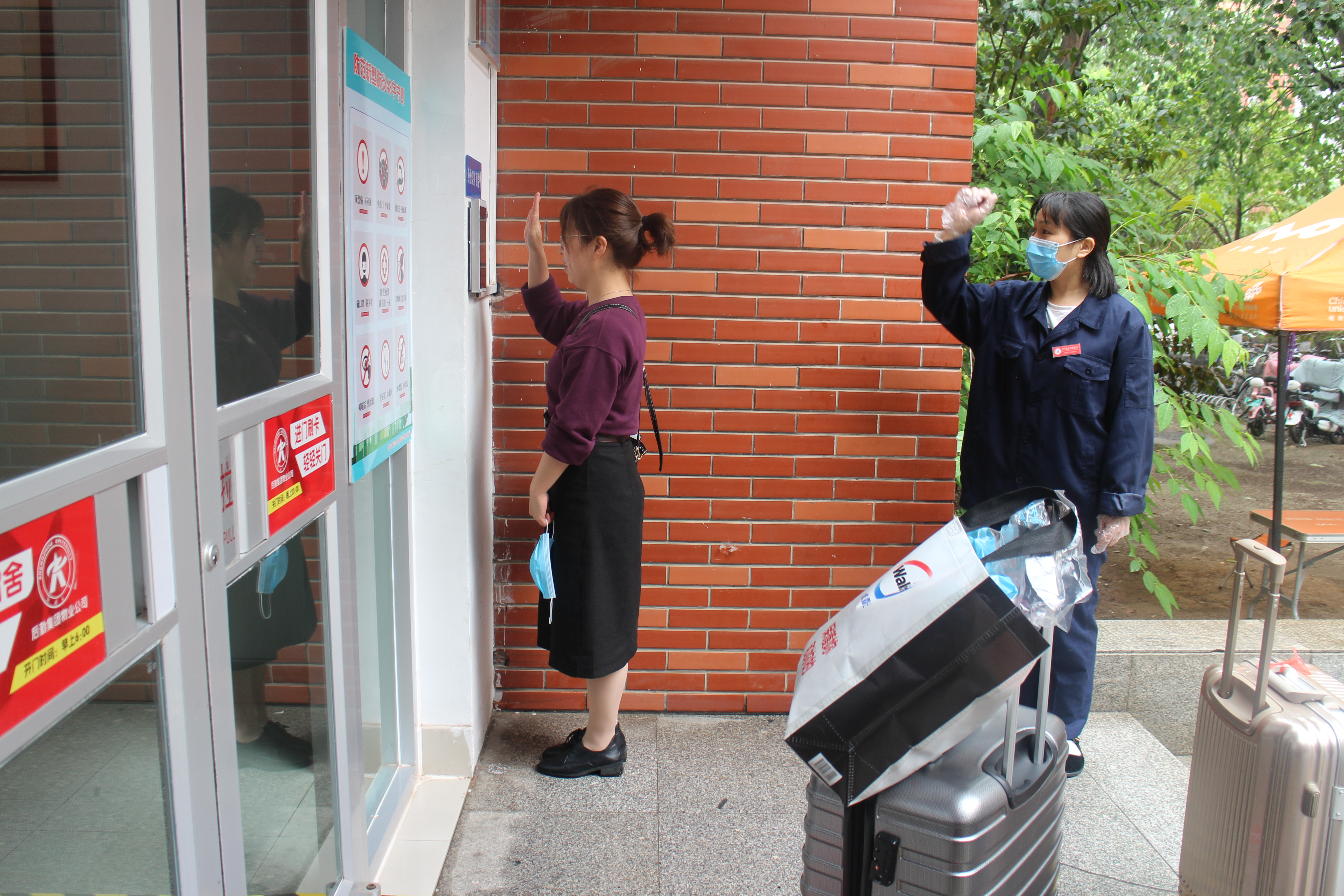 今年秋季返校真是不同寻常。当学生返校来到宿舍门口时,发现阿姨早已站在那里,除了热情的寒暄外,还在一遍遍重复指导每一个回来的学生——“现在宿舍门禁是人脸识别加自动测温,注意看着摄像头,伸出手臂测温”。