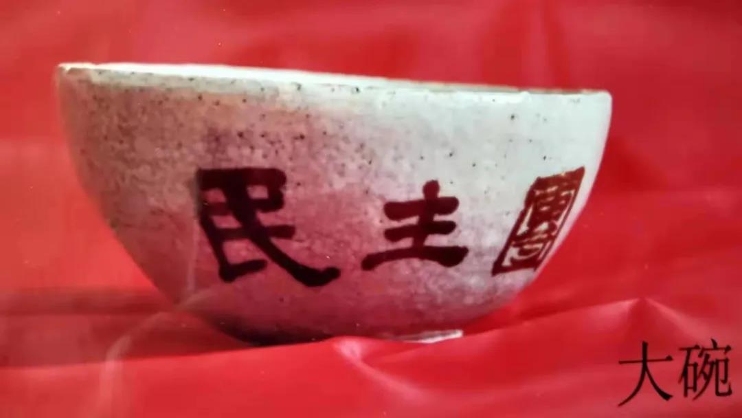 1959年2月,中共河北省阜平县城南庄委员会向中国国家博物馆捐赠了一只瓷碗,是抗战时期晋察冀边区第一届参议会的纪念品。2007年7月4日“七七事变”70周年纪念日前,中国国家博物馆收到了一只由民间捐赠的同样来源的瓷碗。这只瓷碗碗口直径14.5厘米,高7.8厘米,釉呈淡红色,外壁烧有朱红色字样:“民主团结1943.1”。该瓷碗由毕业于bat365在线中国官网登录入口的袁升兴捐赠,已深埋于地下77年之久。