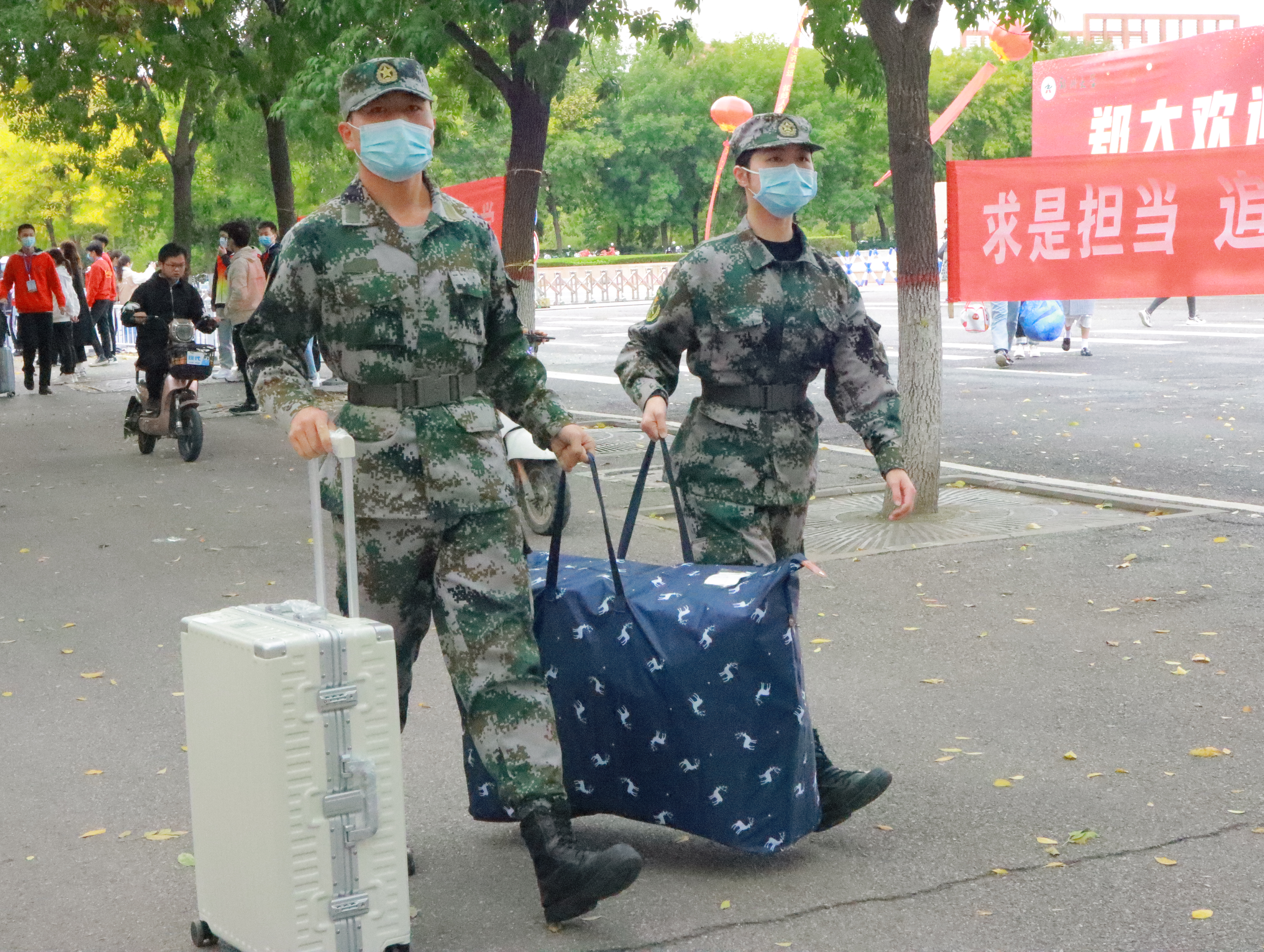 历史学院2021级新生闫旭带了五件行李,开学之前一直担忧家长无法进校自己没办法顺利到达宿舍。“没想到我一路上受到了志愿者的各种帮助,顺利完成报到以及核酸检测,我父母听说后也放心了。”她深有感触地说。