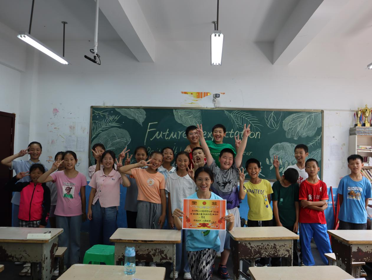 到达后,在当地老师的热情接待下,团队成员们一起初步了解了学生学情。由于村子发展相对落后,有的学生家长对教育不甚重视,有的则是心有余而力不足,学校则承担起日常学习引导和情感陪伴的责任。这也正是此次支教队一行的目的,成员们希望为山区孩子带来新的体验,希望能在短暂的时间内传授给山区学生尽可能多的新知识,让他们始终对“外面的世界”保持好奇,为自己的未来走出一条路。支教队的成员之一、商学院2021级的秦冰沂说:“去支教的路上坐的是火车,我靠在窗边,看着外面一片苍翠。六个半小时的路程真的令人筋疲力尽,但想到马上能与孩子见面,我又充满了活力。”