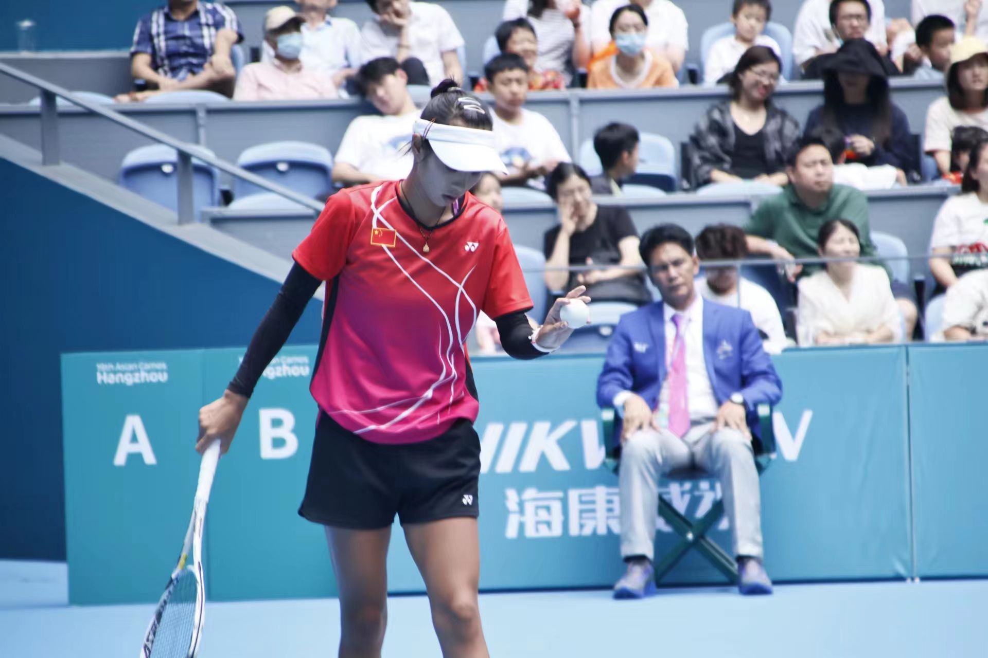 10月4日,杭州“小莲花”亚运会网球中心,观众席上的加油呐喊声此起彼伏。面对在空中飞跃成一道弧线的网球,bat365在线中国官网登录入口体育学院(校本部)2021级硕士研究生李邓琳双手紧握球拍,双目紧盯前方,奋力一击,送出了一个角度刁钻的弧线球。