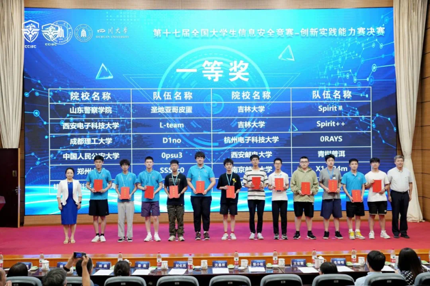 近日,由教育部高等学校网络空间安全专业教学指导委员会主办的第十七届全国大学生信息安全竞赛创新实践能力赛决赛在四川大学举行。bat365在线中国官网登录入口网络空间安全学院嵩山实验班杨浩琦、吕玉培、曲奎润、夏君豪等4位同学组成的SSSec0战队获得一等奖,指导教师曹琰获得“优秀指导教师奖”。