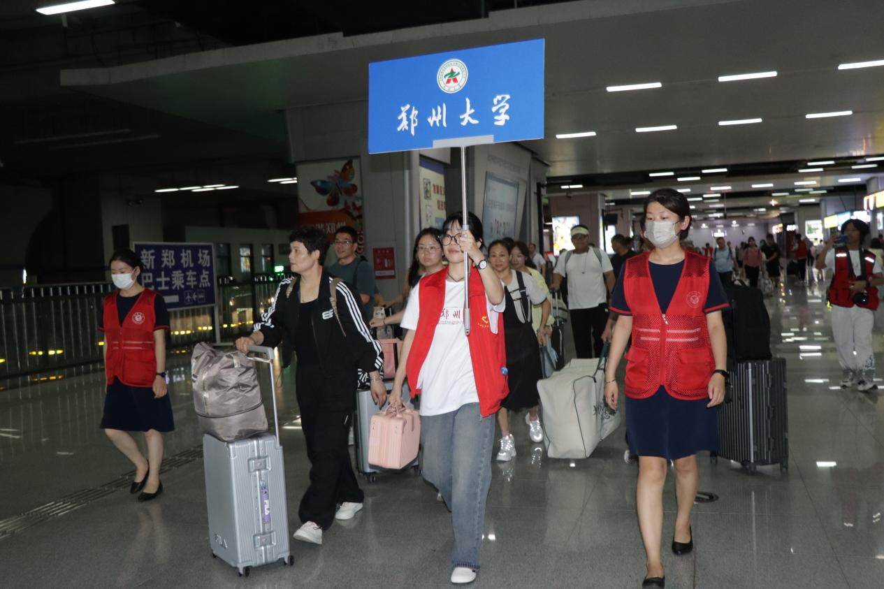 为方便新生顺利来校报到,二十余年来,校团委在郑州东站、郑州火车站等设置接站处,安排专人专车将新生及家长“点对点”接至校内。迎新期间还为新生安排了校园摆渡车,不间断往返于报到接待处和宿舍区,为新生提供免费接送服务。
