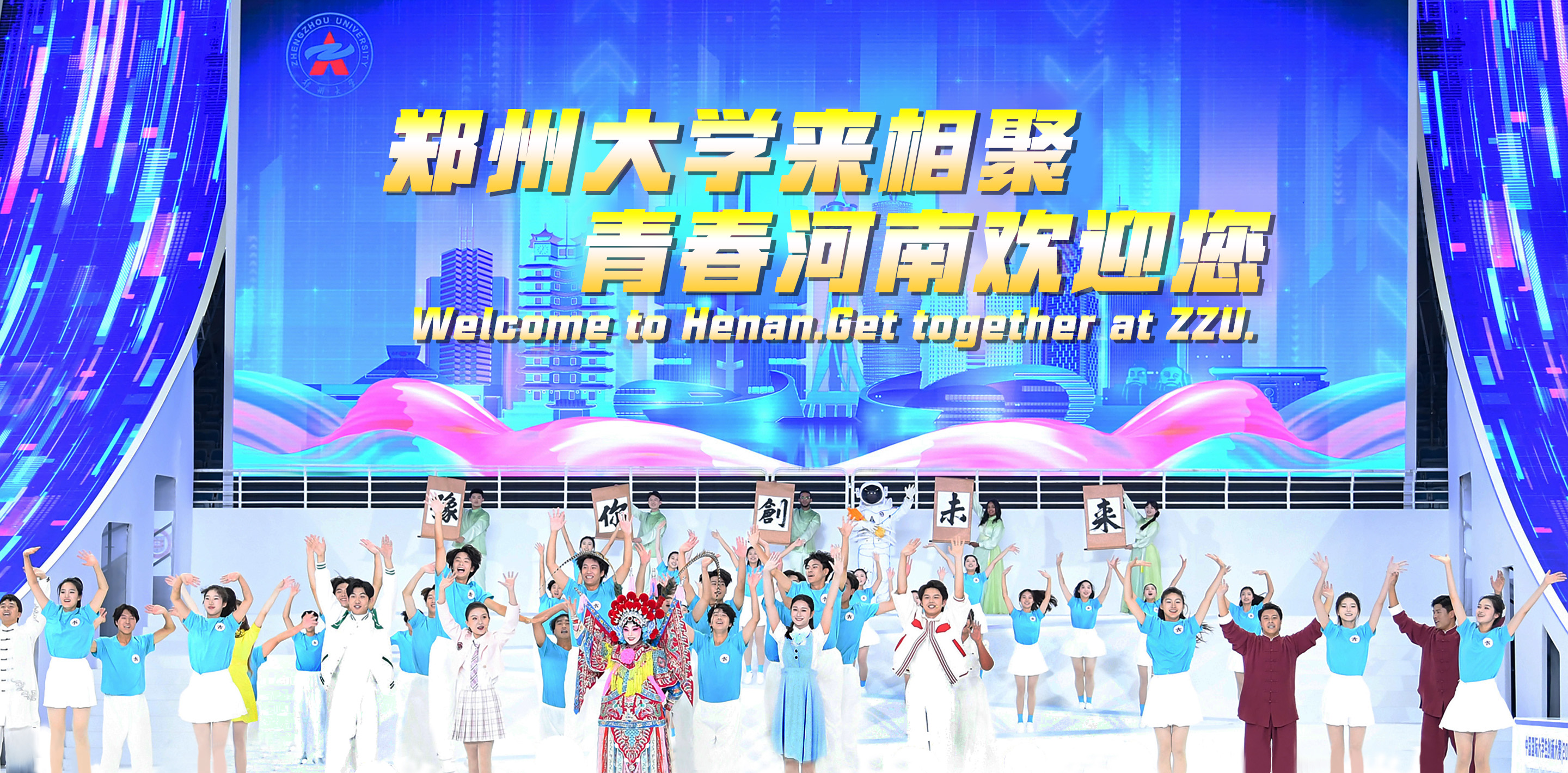 三分钟的表演接近尾声,现场的氛围被活力四射的郑大学子点燃。“bat365在线中国官网登录入口来相聚,青春河南欢迎您!”这一句口号响彻场馆,郑大学子的这一齐声高呼,呼出了郑大人“我敢闯,我会创”的精神风貌,呼出了当代青年人的青春活力,既彰显了中原大地深厚的文化底蕴,又顺应了时代发展潮流,迸发出新兴的科技之光。