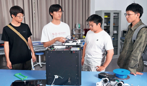 周庆鑫与队友从中汲取智慧,更从往届学长“不轻言弃、共克时艰”的故事中获得精神鼓舞。他们通宵改结构、换材料、调动作,每一个细节都反复斟酌,每一次尝试都全力以赴。终于,在赛前半个月,两个机器人均顺利达成比赛要求。那一刻,所有的疲惫和压力都化作了喜悦和自豪。