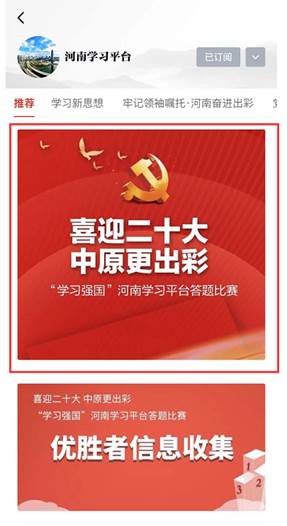 为深入学习贯彻习近平新时代中国特色社会主义思想,营造喜迎党的二十大胜利召开的良好舆论氛围,引导广大党员群众运用“学习强国”学习平台开展理论知识学习,由中共河南省委宣传部主办、“学习强国”河南学习平台承办的“喜迎党的二十大 中原更出彩”“学习强国”河南学习平台答题比赛已上线。现将活动有关事项通知如下:
