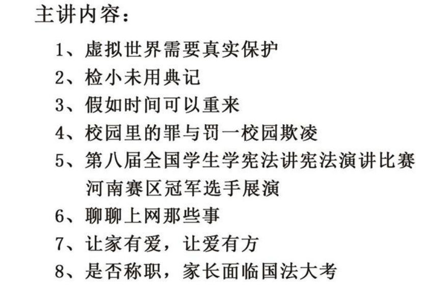(一)高度重视,精心组织。各基层党委要提高政治站位,强化主体责任,高度重视加强法治宣传教育的重要性,及时通知师生及家长收看,不断提高广大师生的法治素养。