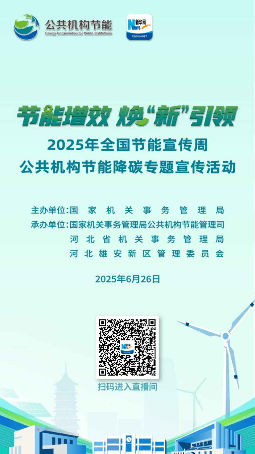 同时,为进一步助力大家深入了解节能降碳知识,国管局将于6月26日上午9:30举办2025年全国节能宣传周公共机构节能降碳专题宣传活动,并发布公益宣传短片。大家可通过以下方式参与: