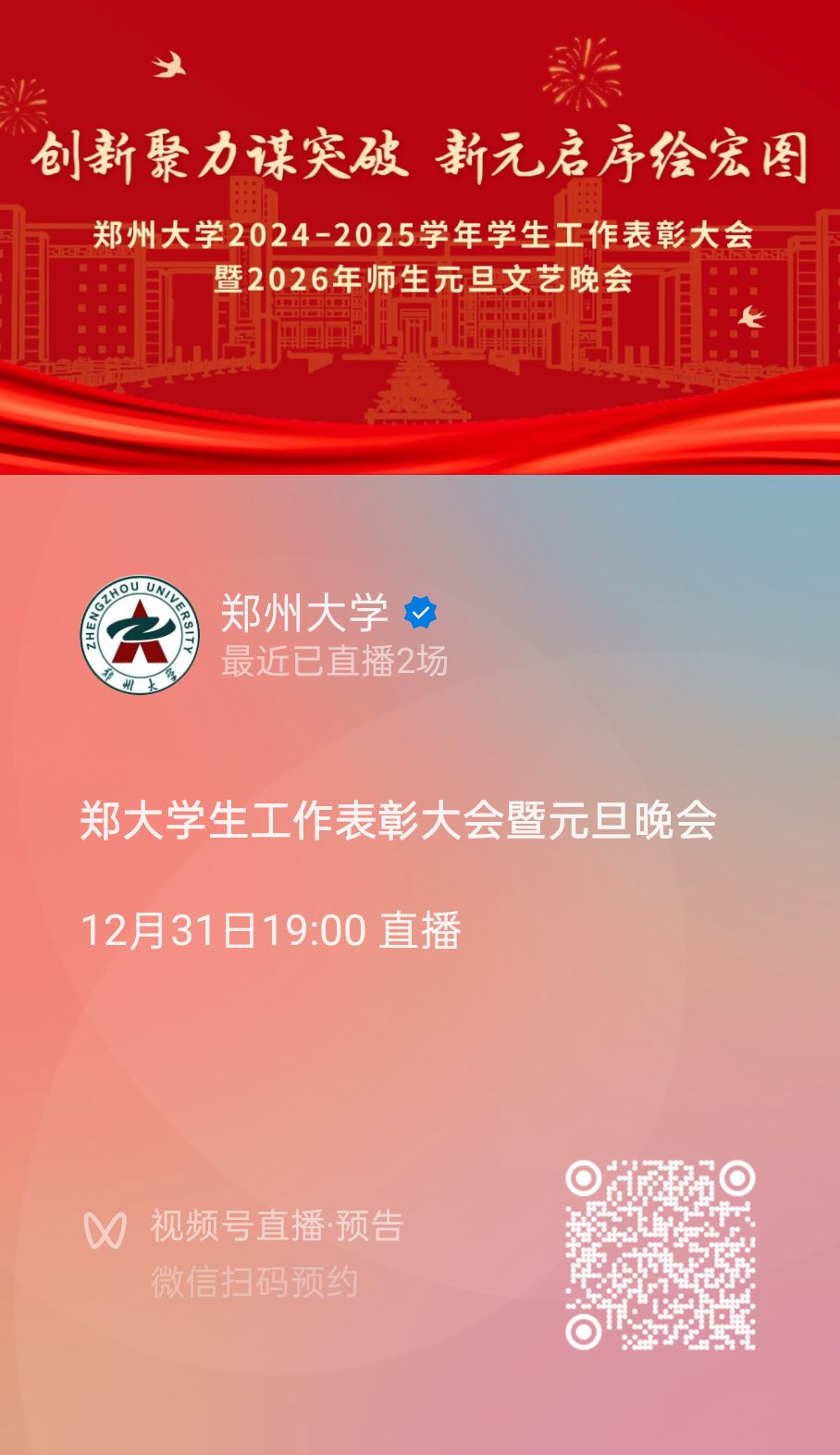 bat365在线中国官网登录入口2024—2025学年学生工作表彰大会暨2026年师生元旦文艺晚会、迎新年钟声联欢会将进行网上同步直播,全景展现大会盛况。