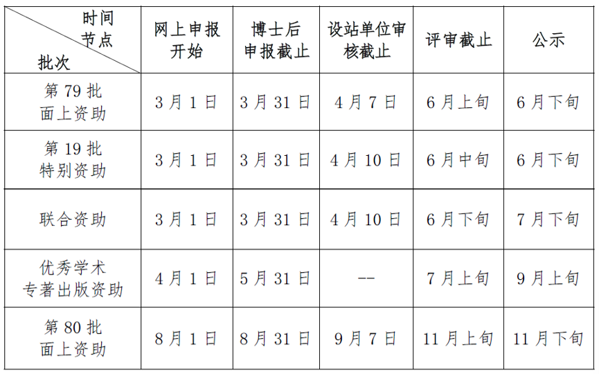 中国博士后科学基金第79批面上资助、第19批特别资助和联合资助将于2026年3月1日开始网上申报,欢迎各位博士后踊跃申报。